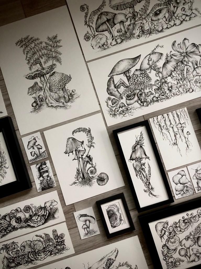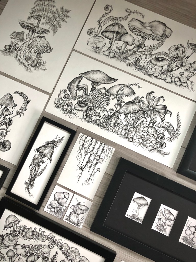There is such excitement to be finished with this year’s #fungiforest series. I created 36 originals, but only 34 made it into the release this year on October 1.