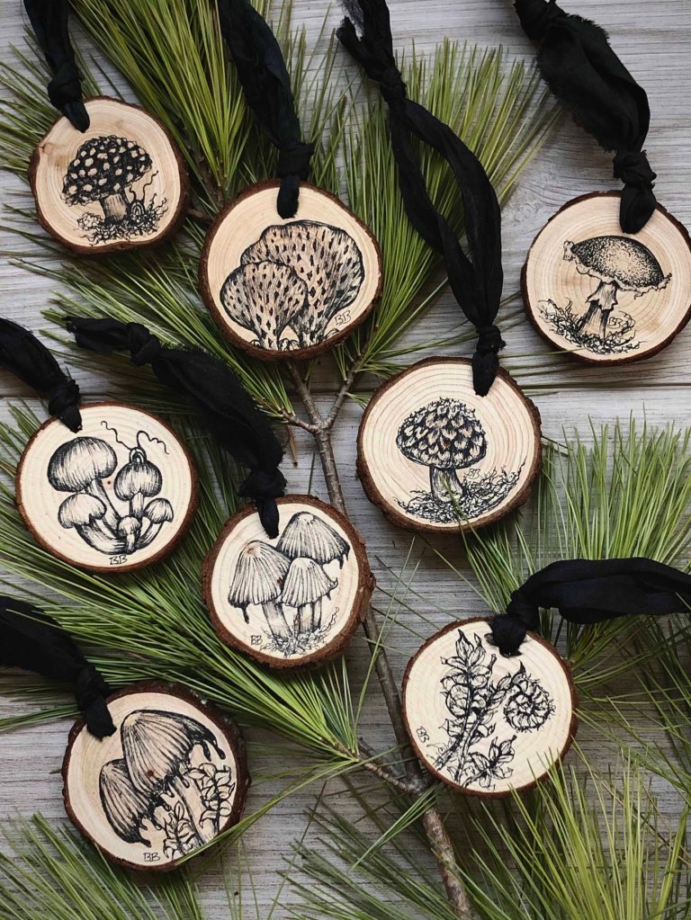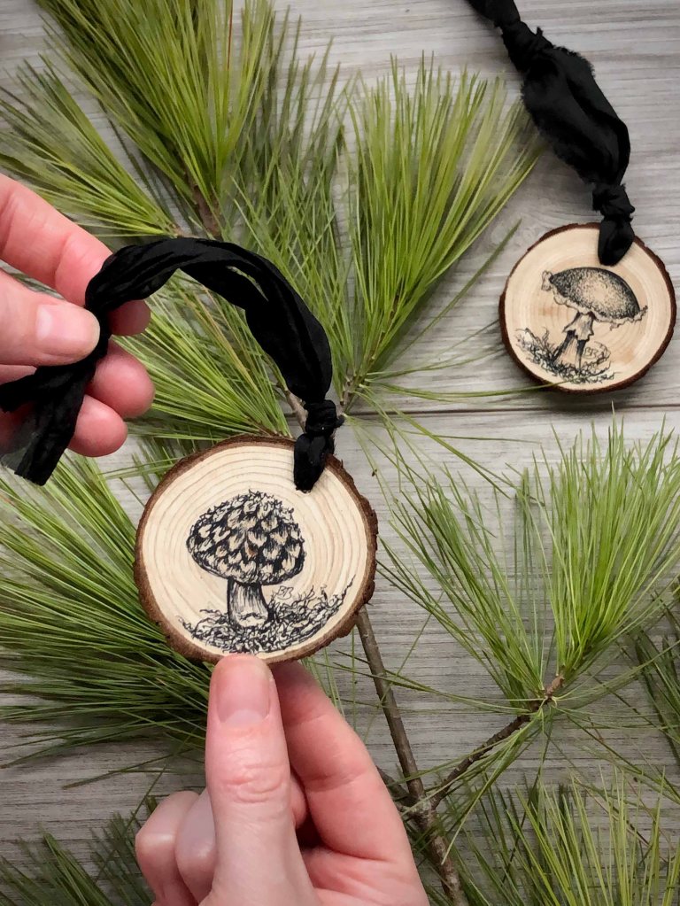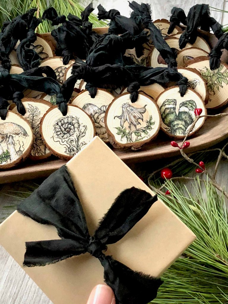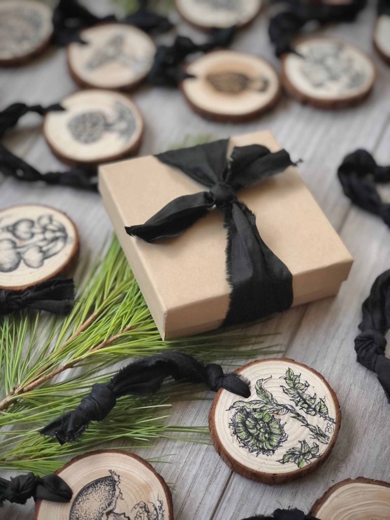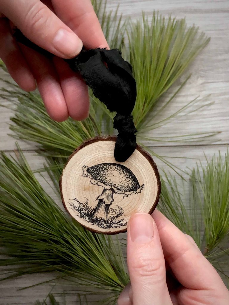 Dear fellow fungi + fern lovers, I’m so excited to be offering you something you can cherish and hang on your tree for the upcoming years. Something that will spur a memory of all the adventures out in nature. The memories of foraging. The memories of discovery. The memories of connecting with dear ones while spending time together. Or maybe they will not spur a memory but bring you delight because they are something you like and admire.